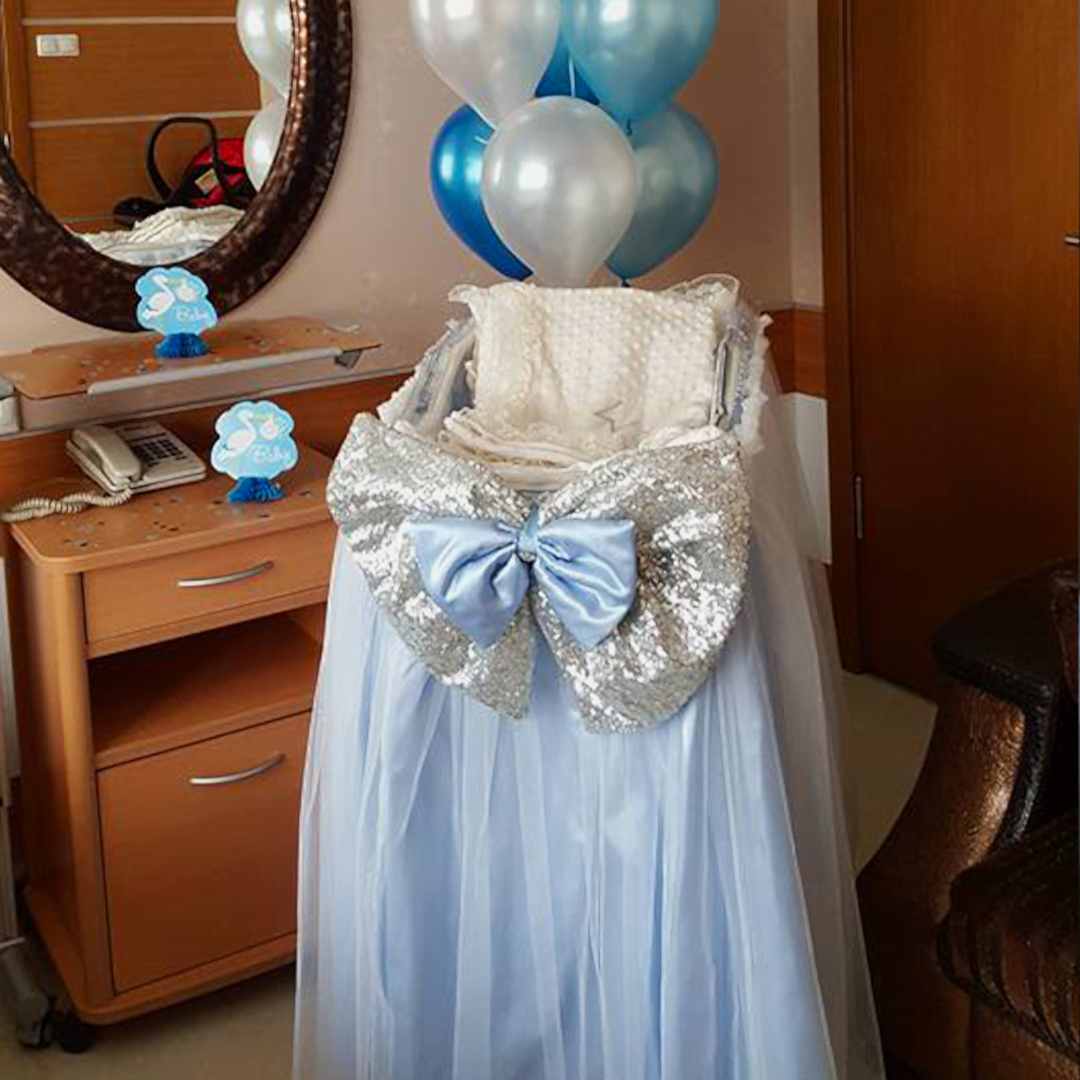 Doğumda hastane odası süsleme için ilk olarak süslenecek yer konuklarınızın ilk göreceği yer olan kapı süslemeleridir. Doğum odası süslemeleri için kapıyı tüller, Bannerlar, isimlikler, bebeğinizin cinsiyetine göre balonlar gibi yaratıcılığınıza göre süslenebilir. Girişi süsledikten sonra ilk göreceğiniz şey kuşkusuz uzun bir yolculuktan çıkan minik masum olacaktır. Dolayısıyla hastane bebek odasında en önemli yer bebeğin yatağı olacak.